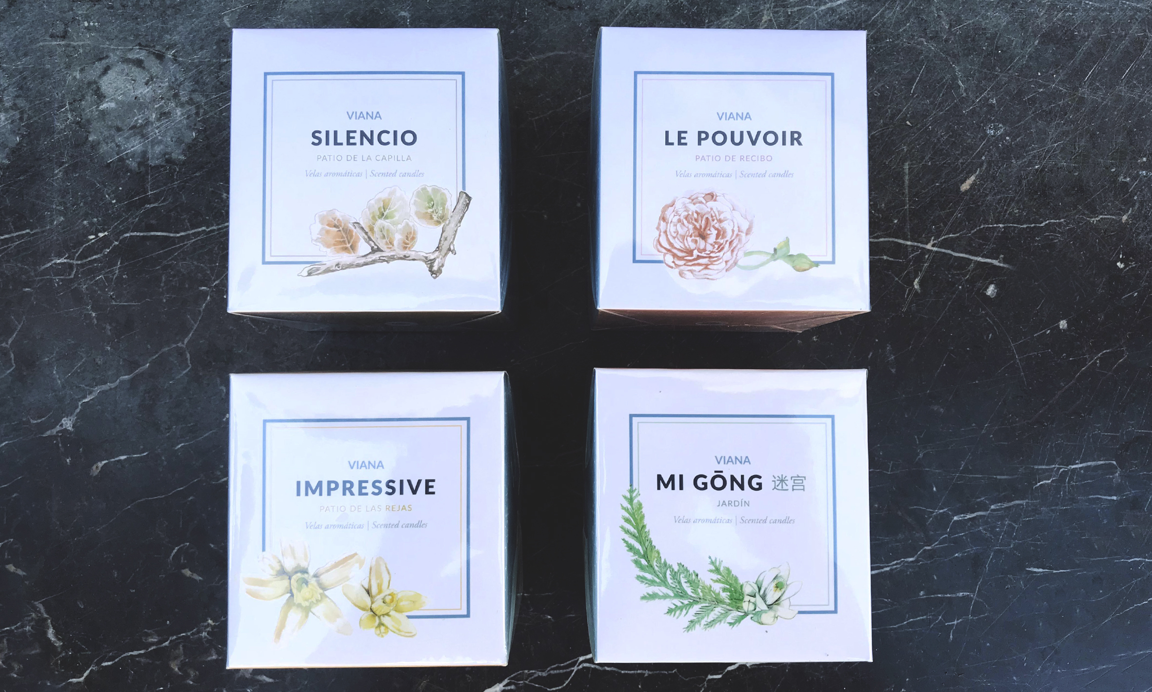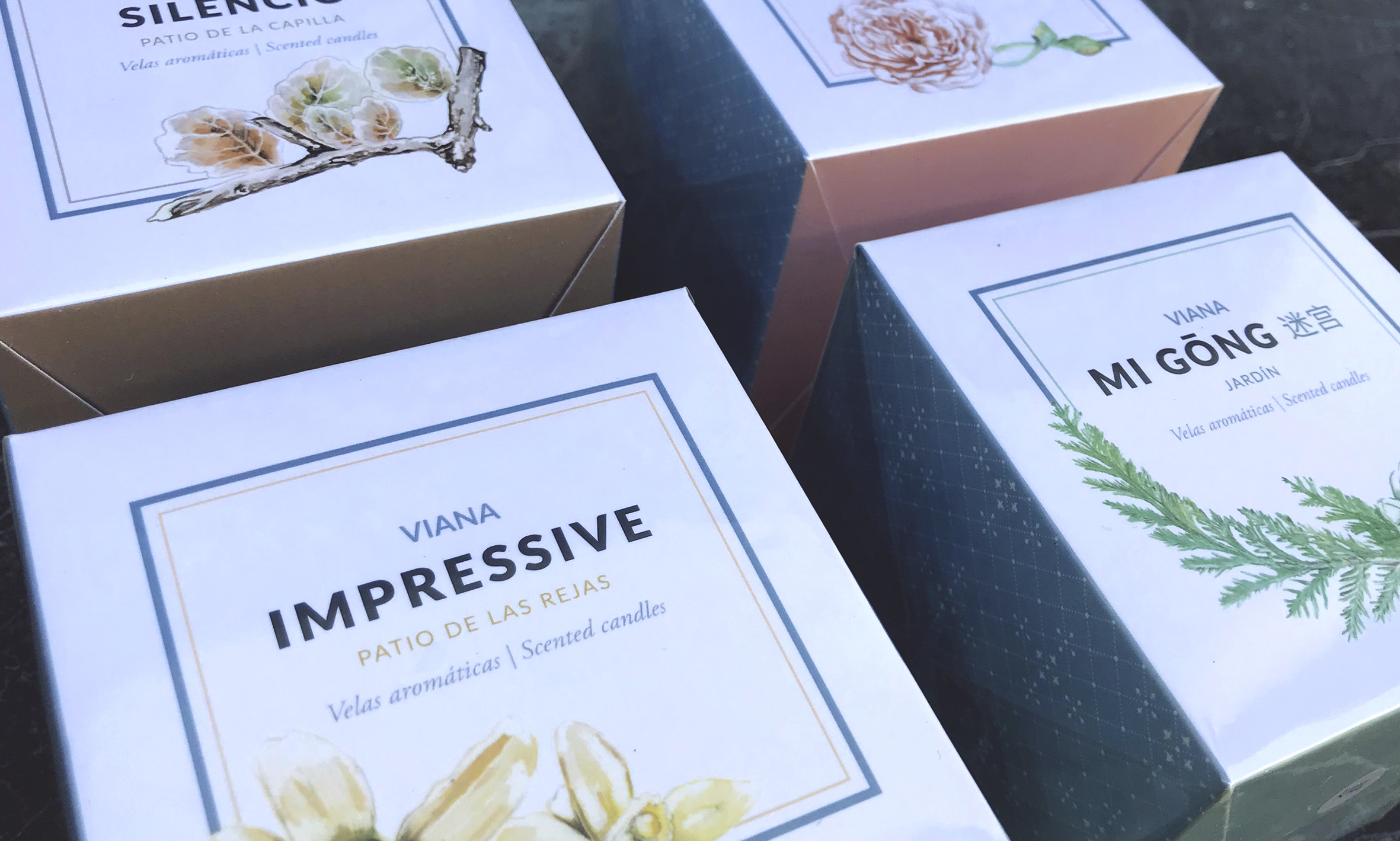 Un diseño cuidado, sencillo y elegante, con una imagen muy asociada a la propia del Palacio de Viana, que acompañado de una ilustración, dibuja y colorea cada esencia de esta colección.